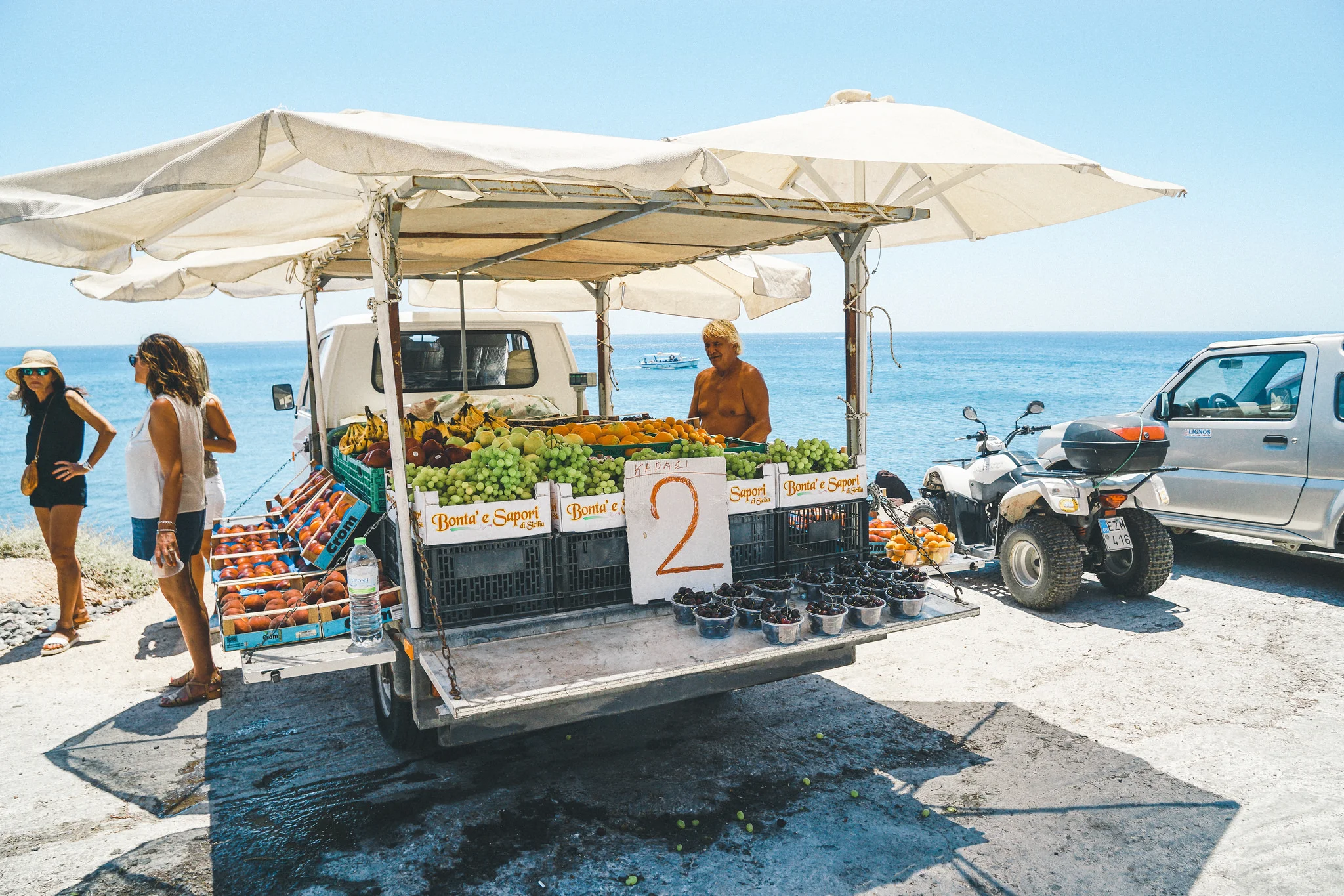 We parked our ATV, and prayed to Zeus for its safety. We bought local peaches and watermelon, I always need snacks for a hike in beach, as seclusion oftens hints to few amenities. We hiked down towards the beach in awe of this otherworldly grotto. We squeezed into a few available inches on the beach smoothed our towels as best we could over the irregular pebbles. The water was warm and perfect and we swam from one cove to another, and claimed a rock island with our very own sea salt. Mallory and I are divers and couldn't resist a snorkel, especially as mythical mermaids in the Mediterranean Mars.