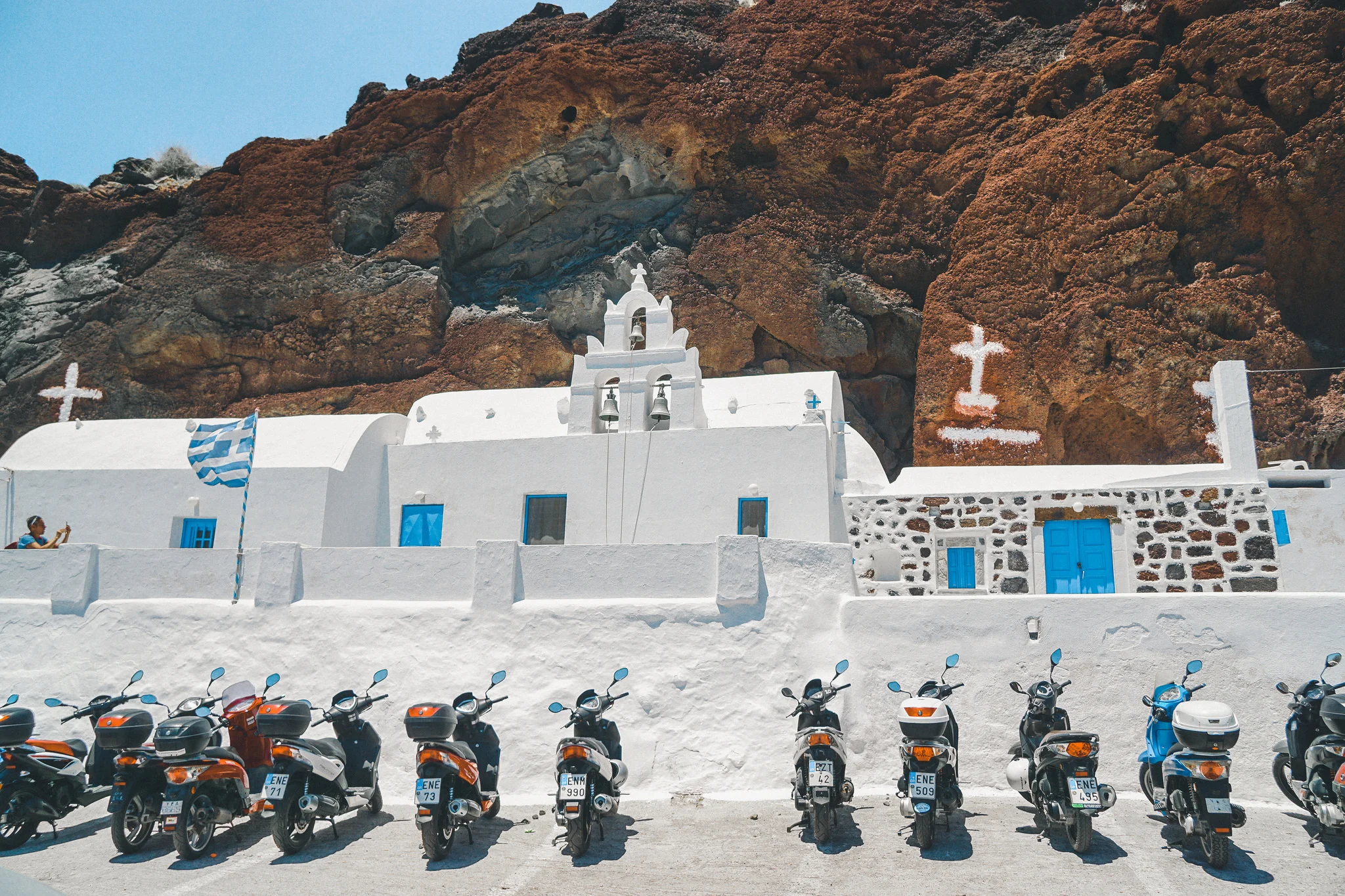 We strolled over to the ATV rentals, knowing we had to ride in style, and I love the freedom of stopping at will and taking in all the unique views. The first rental service refused use and required an international license, but we walked over the the next one who accepted my American license. Pro Tip: Don’t lose faith! Or you can be really prepared and arrange an international license, because the island ATV experience is never one to be missed. PS- No one truly warned me of how big Santorini is, and the ATV ride across island and back took most of the day with just one snack stop before the beach. The ride to Red Beach will have portions of driving on the main road, and always make sure you know where you are going and have plenty of fuel. Stop whenever you see something intriguing to you, in the birthplace of democracy, the freedom is yours!