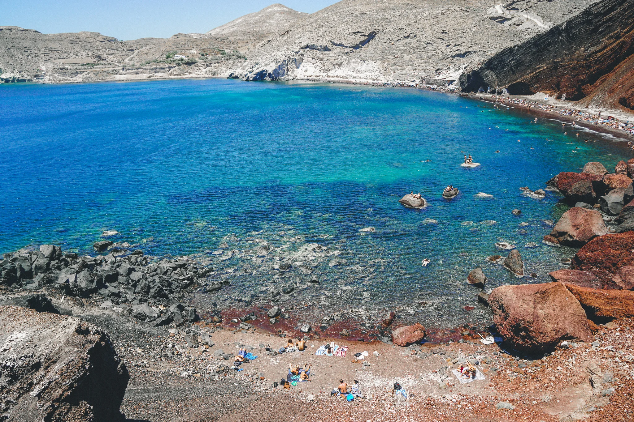 Directly across the caldera’s sapphire waters from Oia, resides a most curious and technicolor paradise. Near the Akrotiri ruins, hides a cove fit for the sirens of Homer’s Odyssey. Striking Blood red cliffs dip sharply to the shore, where pebbles of black and garnet join a teal sea, and coalesce into an almost violet shorebreak. I was speechless before such strangeness, such color. Did we quad to the edge of the sea, or of space?
